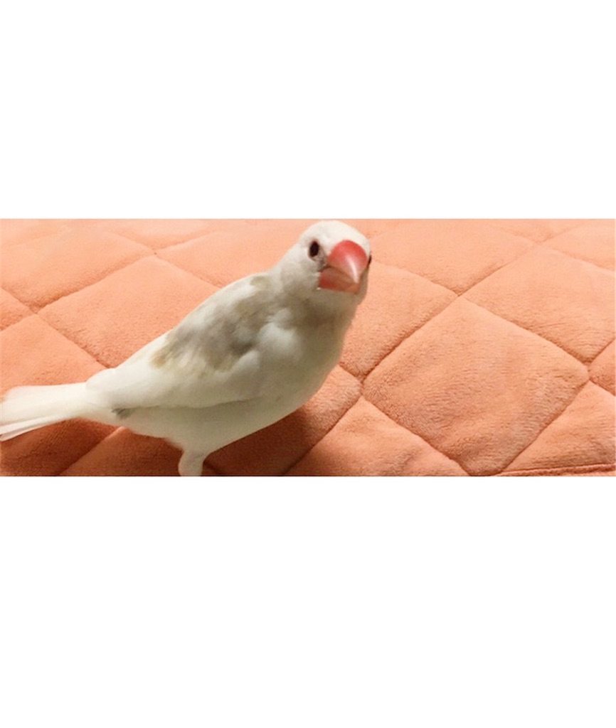 成鳥になり、だいぶ背中のグレーの毛も生え替わってきて、白文鳥になりつつあります。